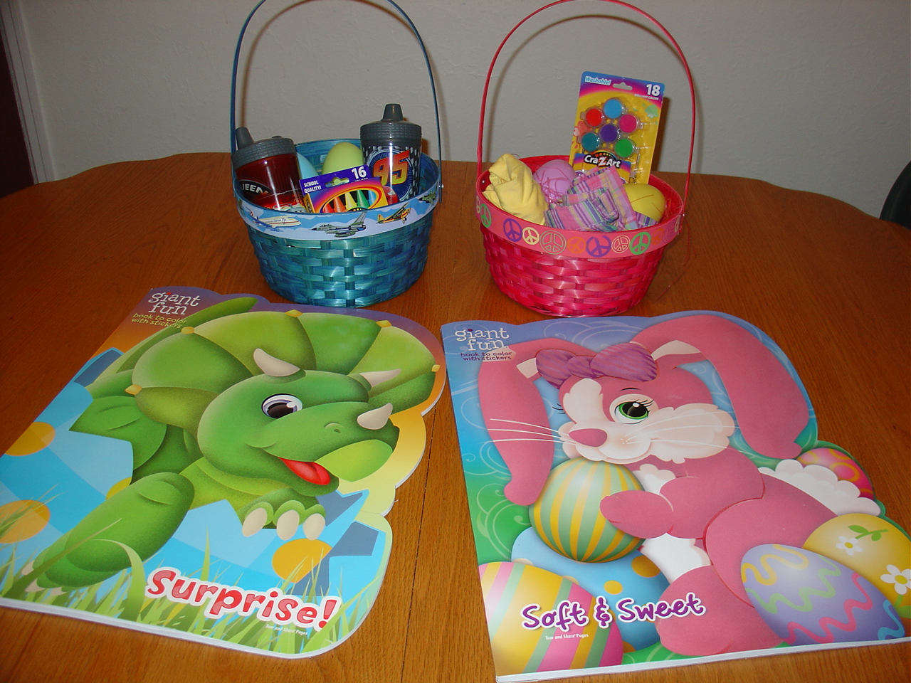 So I drive 12 minutes back towards my house and stop at another store, Meijer, as there was no way in Helena Montana that I was giving Walmart anymore money. They did not have Lightening McQueen but they had Toy story and they were .98 cents less so I went with them. I brought them home, put them in the basket and Easter was a success.